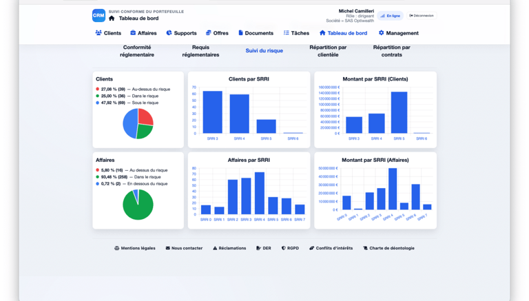 Le client est vu de façon consolidée, le performances et risques sont calculés via un "look-through", c'est à dire une consolidation réelle de tous les sous-jacents de tous ses placements (et non une moyenne comme l'indique trop d'outils non conformes)...